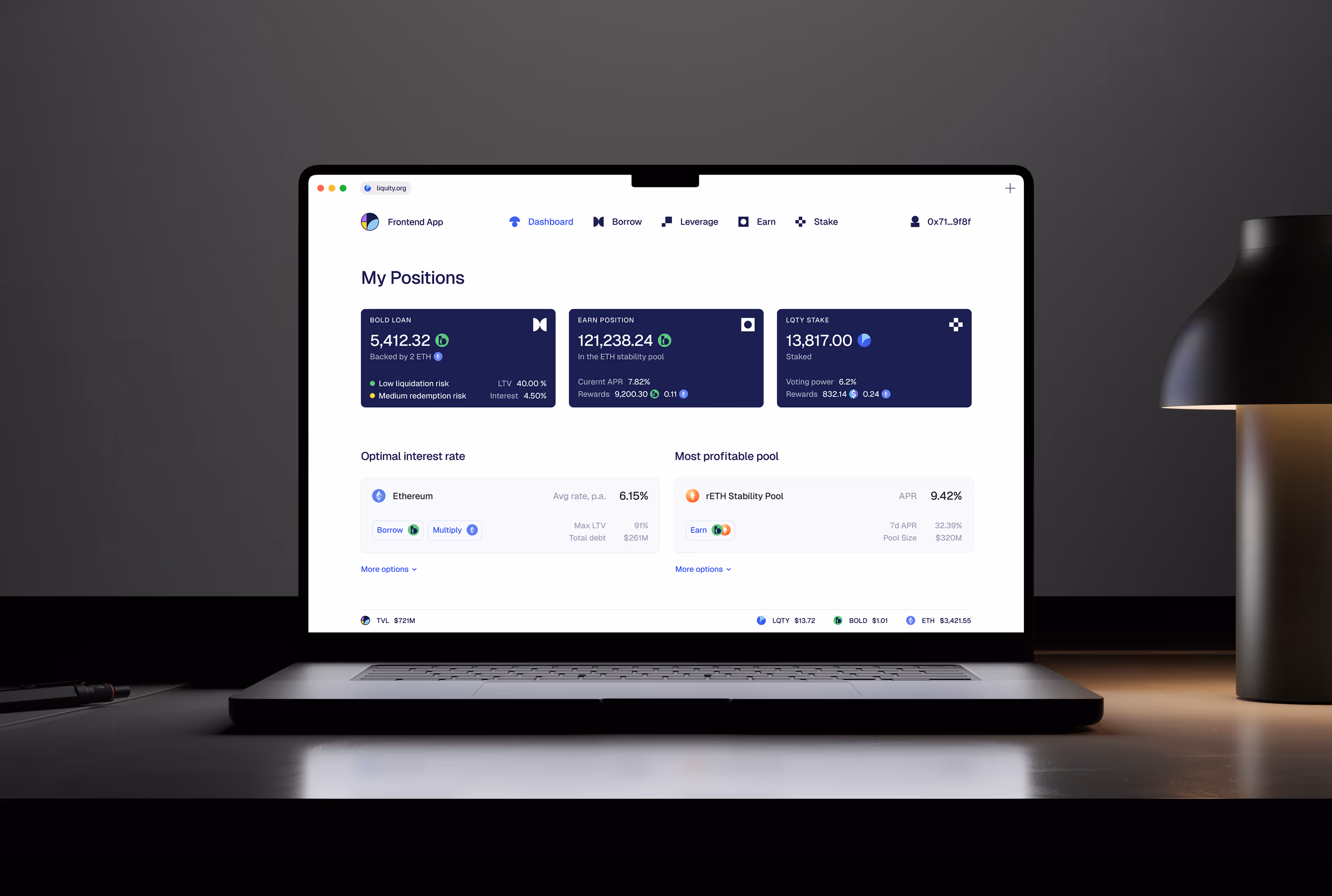 I worked closely with the Liquity team to develop a new visual language inspired by simplicity, clarity, and harmony principles. And I designed the product with a focus on purpose over decoration, where form naturally follows function.